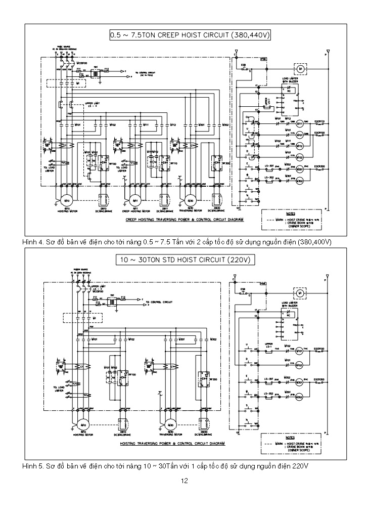 Tổng hợp mạch điều khiển palang Hàn Quốc đối với các hãng KGCRANE, KUKDONG, SUNGDO, BANDO, HYUNDAI có sơ đồ mạch điện là tương đối giống nhau.