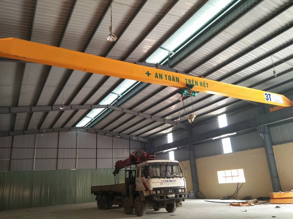 - Cầu trục dầm đơn: Cầu trục dầm đơn hay còn gọi là cầu trục 1 dầm là cầu trục phổ biến nhất có dải tải trọng làm việc từ 0,5 tấn đến 20 tấn khẩu độ từ 3m đến 20m hoặc có thể lớn hơn.