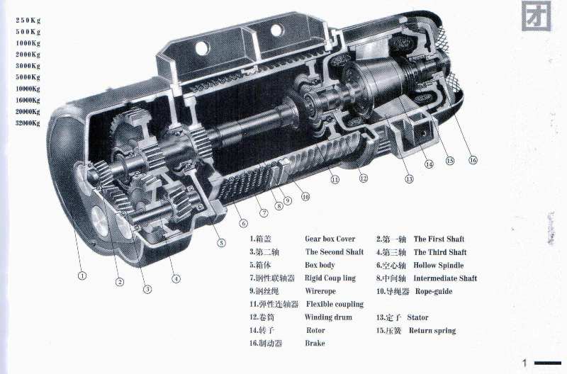 Nhìn vào hỉnh vẽ trên ta có thể thấy cấu tạo bên trong của 1 bộ palang cáp điện bao gồm: