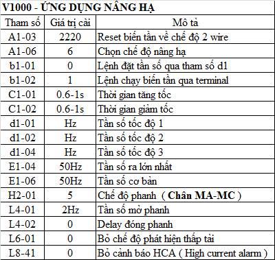 HƯỚNG DẪN CÀI ĐẶT CÁC THAM SỐ CƠ BẢN BIẾN TẦN YASKAWA V1000 CƠ CẤU NÂNG HẠ.