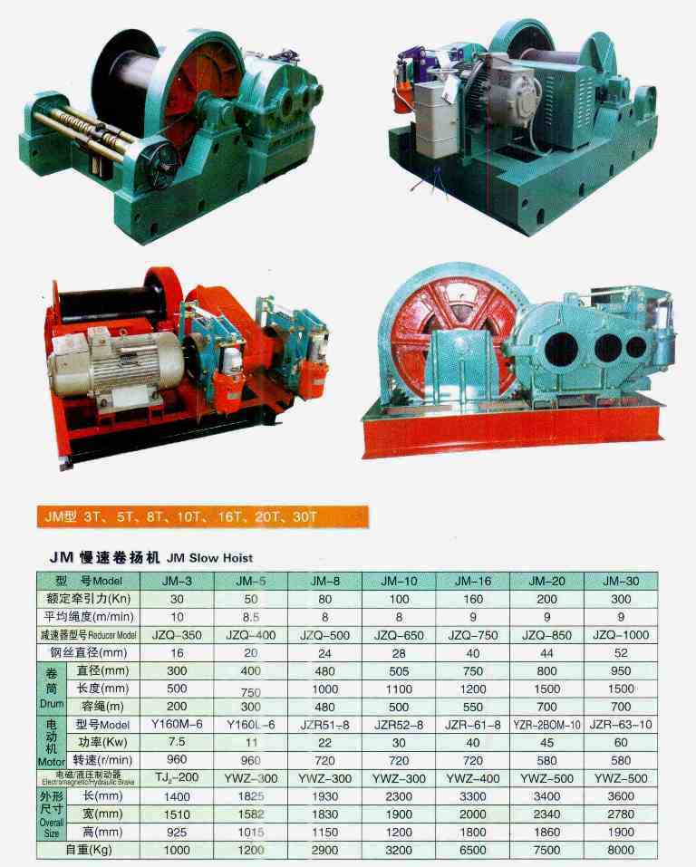 Tời kéo mặt đất được chế tạo theo tiêu chuẩn gồm có loại tời tốc độ chậm (JM) và tời tốc độ cao (JK). Tời kéo được chế tạo theo phương pháp tổ hợp các thiết bị rời có độ bền cao, ít phải sửa chữa bảo dưỡng, phụ tùng thay thế rẻ và dễ dàng thay thế.